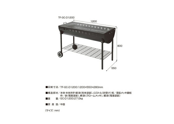 ■寸法/1200×550×800(h)mm■収納寸法/TF-GC-D830:830×550×280mm、TF-GC-D1200:1200×550×280mm■構造部材/鉄、亜鉛メッキ鋼板■重量/GC-D830:19kg、GC-D1200:27kg【代引きについて】こちらの商品は、代引きでの出荷は受け付けておりません。